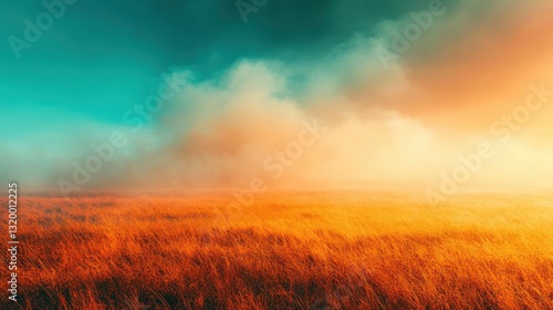 Obraz premium Serene Landscape with Lush Grass Fields Under Dramatic Sky and Colorful...