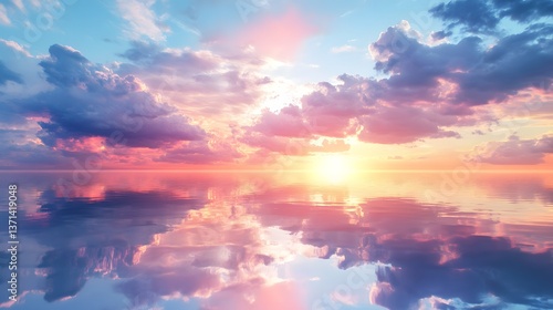 © Touch, Fototapeta premium Serene Landscape with Multi-Colored Clouds Reflecting in Water - Aspect Ratio 16:9