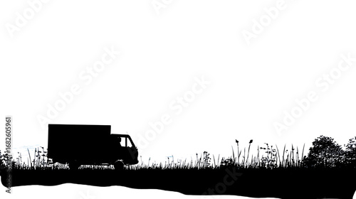 © Sirinya, Fototapeta premium Serene Landscape with Silhouettes of Trees and Distant Hills at Dusk