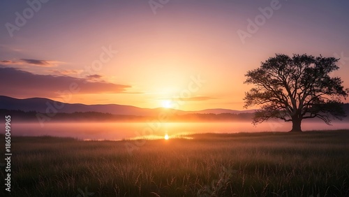 © Radit, Fototapeta premium Serene Landscape with Tree at Sunset.