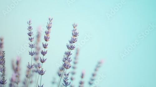 Fototapeta premium Serene lavender blooms against a gradient background of lavender to pale blue...