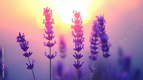 © Photock Agency, Obraz premium Serene Lavender Field at Sunset Glow