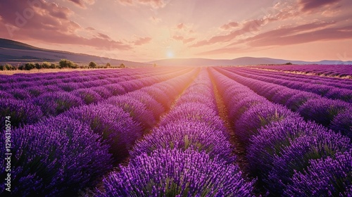 Fototapeta premium Serene Lavender Fields at Sunrise