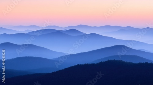 Fototapeta premium Serene layers of blue and violet mountains at sunset