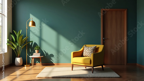 Obraz premium Serene living room with a comfortable white sofa facing a large window with a...