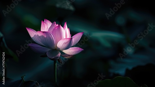 Obraz premium Serene lotus flower in bloom, highlighted by soft sunlight against a dark,...