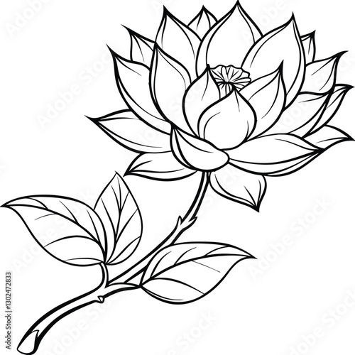 Fototapeta premium Serene Lotus Line Art Vector - A Symbol of Purity and Tranquility in Elegant...
