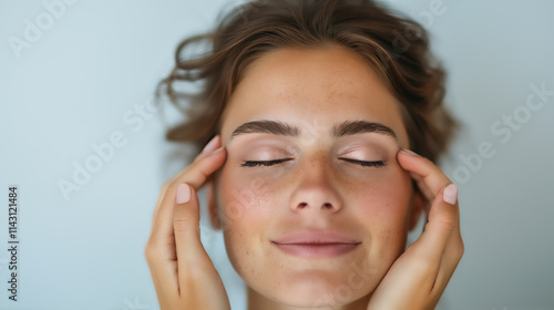 Fototapeta premium Serene makeup application home studio beauty portrait soft lighting close-up relaxation