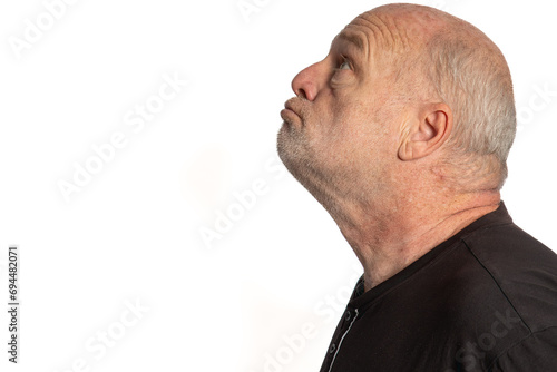 © Peter Togel, Fototapeta premium Serene Mature White Male in Black Shirt, Profile Portrait on White Background