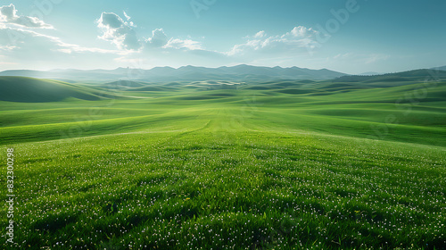 © Flop, Fototapeta premium Serene Meadow & Mountain Aerial View: Minimalism in Art
