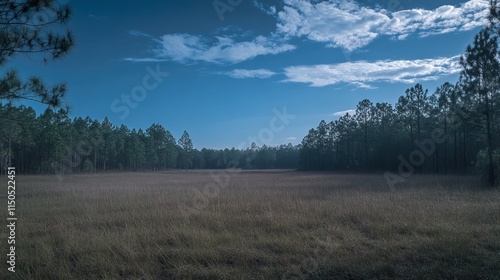 Obraz premium Serene Meadow Surrounded By Tall Pine Trees