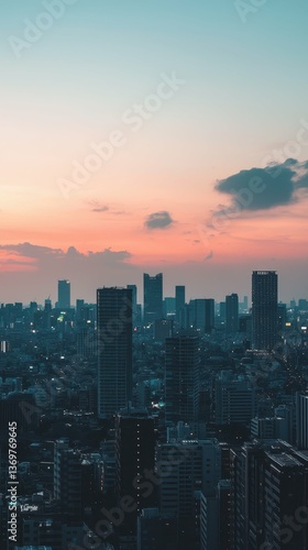 Fototapeta premium Serene Minimalist City View with Soft Pastel Skies at Dusk