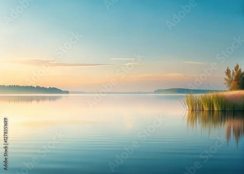 © Sunee, Fototapeta premium Serene Minimalist Lake: Soft Hues & Simple Lines - Stock Photo