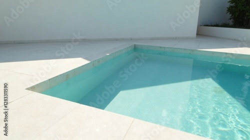 Obraz premium Serene Minimalist Pool Design Sunlight Illuminates a Calm, Aqua-Colored...