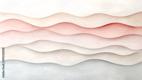 © Bos Amico, Fototapeta premium Serene minimalist seascape with a pastel gradient background gently shifting from soft pink to soothing beige featuring a subtle textured overlay that lends visual interest and depth