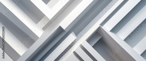 © KenPix, Obraz premium serene minimalistic white wall with symmetrical line pattern
