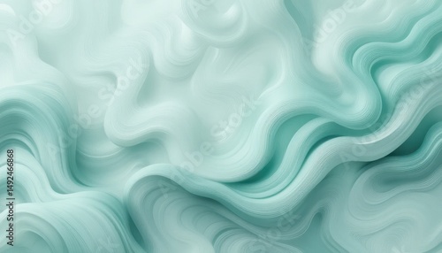 © Chainarong, Obraz premium Serene Mint Green and Gray Abstract Swirl Background Tranquil Flowing Pattern Texture