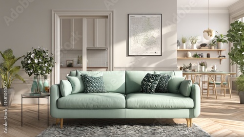 Fototapeta premium Serene Mint Green Living Room Interior Design