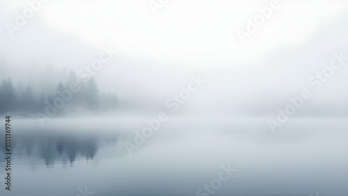 Fototapeta premium Serene Misty Lake Landscape at Dawn