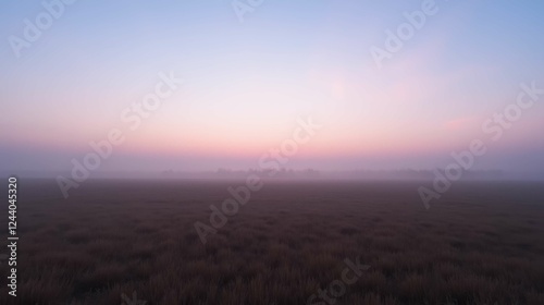 © Kitta Studio, Fototapeta premium Serene Misty Landscape at Dawn with Soft Pastel Sky Colors