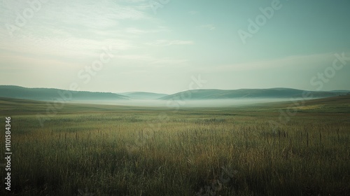 Fototapeta premium Serene Misty Meadow Rolling Hills Landscape