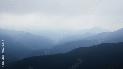 Fototapeta premium Serene Misty Mountain Range with Layers of Blue and Gray Tones