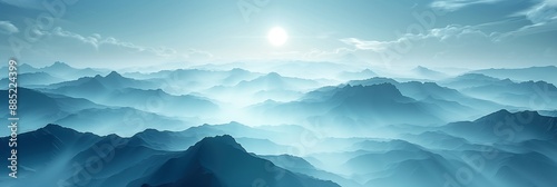 Fototapeta premium Serene Misty Mountain Ranges Under a Soft Sunlight
