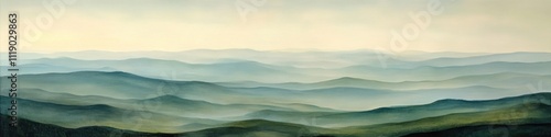 © LyceeChee, Obraz premium Serene Misty Mountainscape A Tranquil View
