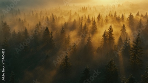Fototapeta premium Serene Misty Pine Forest in Dawn