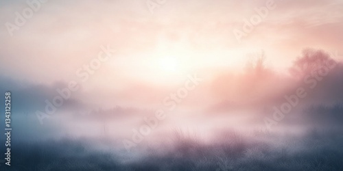 Fototapeta premium Serene misty sunrise over tranquil meadow landscape