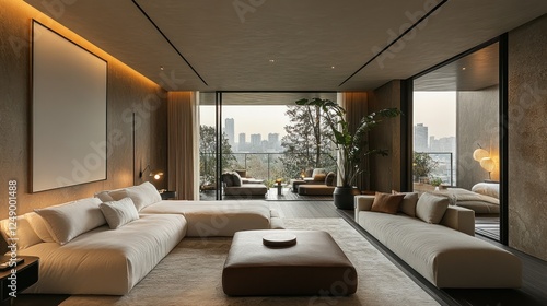 Fototapeta premium Serene Modern Apartment with Panoramic City View