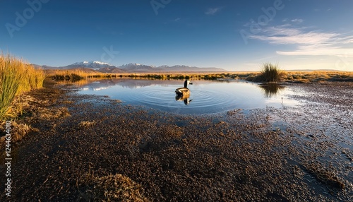 © netsay, Obraz premium Serene Moment A Majestic Duck Swims Across the Tranquil Lake in the Pampas Lagoon Environment, La Pampa Province, Patagonia, Argentina