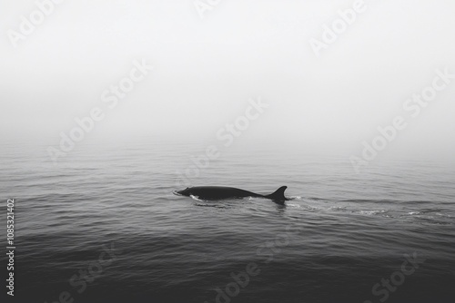 Fototapeta premium Serene Moments: A Dolphin Gliding Through Misty Waters