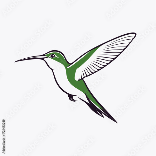 © zenn vermillion, Obraz premium Serene Monochromatic Line Art Hummingbird Minimalist Vector Illustration