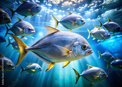 © Four888, Naklejka premium Serene Moonfish Underwater Scene: Silver Glow, Peaceful Ocean Life