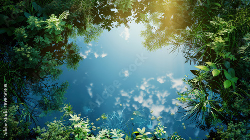© VaCity, Obraz premium Serene Morning Reflection in Forest Pond