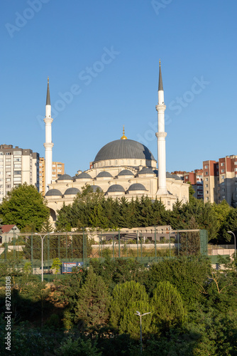 Naklejka premium Serene Mosque Nestled in an Urban Oasis