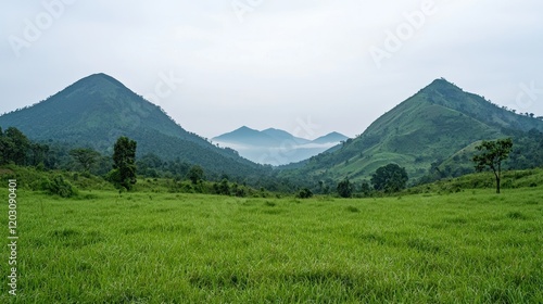 © Samsudi, Fototapeta premium Serene Mountain Grassland