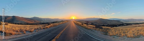 Fototapeta premium Serene Mountain Highway at Sunrise - Pristine Road Conditions and Natural Beauty
