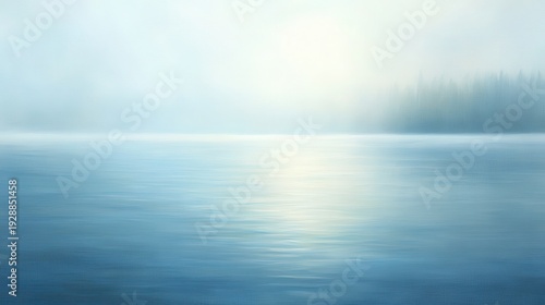 Fototapeta premium Serene mountain lake at dawn with soft light reflecting on calm waters,...