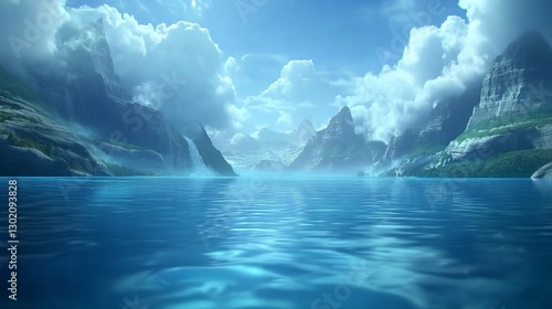 Fototapeta premium Serene mountain lake, cloudscape background, idyllic travel scene