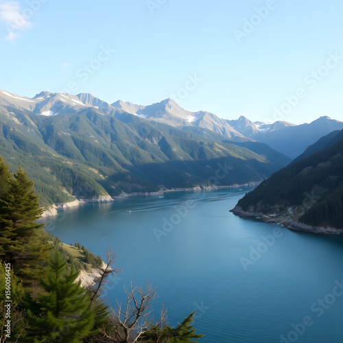© Biyumi, Fototapeta premium Serene Mountain Lake Landscape