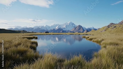 © Slamet, Naklejka premium Serene mountain lake reflection