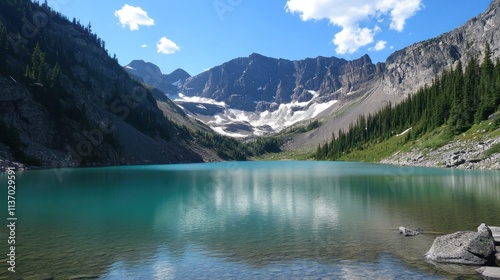 Naklejka premium Serene Mountain Lake Reflection in Majestic Landscape