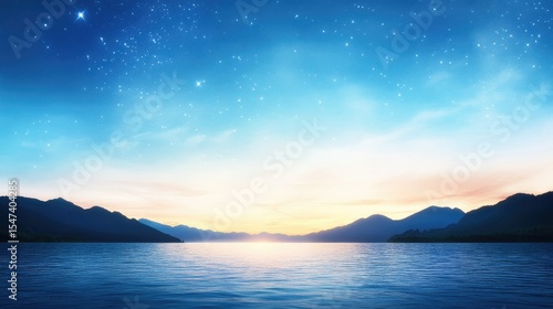 © Bayu, Fototapeta premium Serene mountain lake sunset panorama