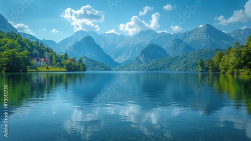 © vixion, Naklejka premium Serene Mountain Lake with Reflection