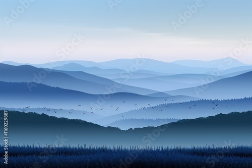 Fototapeta premium Serene mountain landscape at dawn overlooking vast blue horizons nature scene...