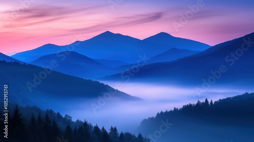 Fototapeta premium Serene mountain landscape at dawn with misty valleys