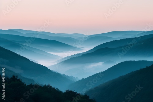 Fototapeta premium Serene Mountain Landscape at Dawn with Misty Valleys