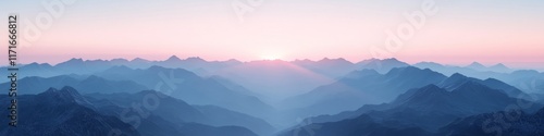 Obraz premium Serene mountain landscape at sunrise, showcasing vibrant colors and layered...